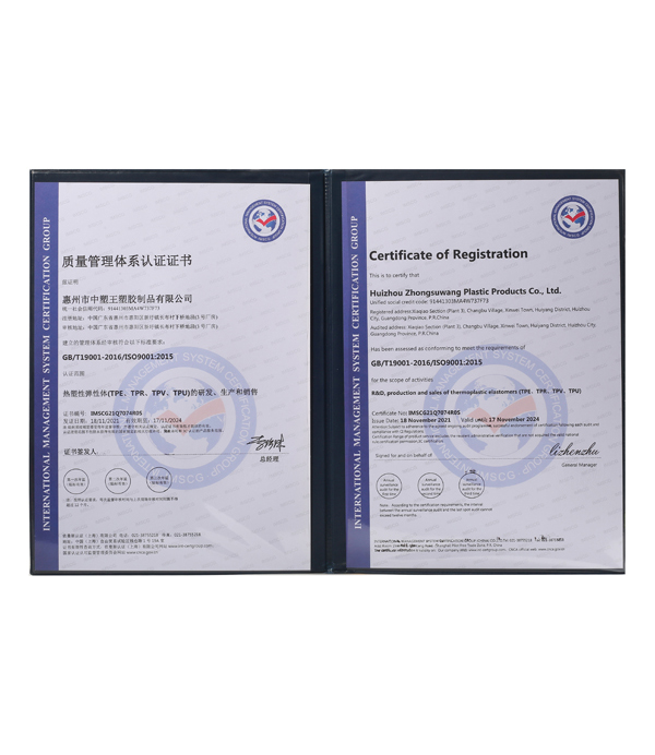 中塑企業(yè)是一家專業(yè)研發(fā)、生產(chǎn)和銷售熱塑性彈性體(TPE、TPR、TPV、TPU、SBS、SEBS)的高科技企業(yè);已通過ISO 9001:2015國際質(zhì)量管理體系認(rèn)證,榮獲國家高新技術(shù)企業(yè)資質(zhì),擁有國際注冊品牌:KANPLON 康普能。